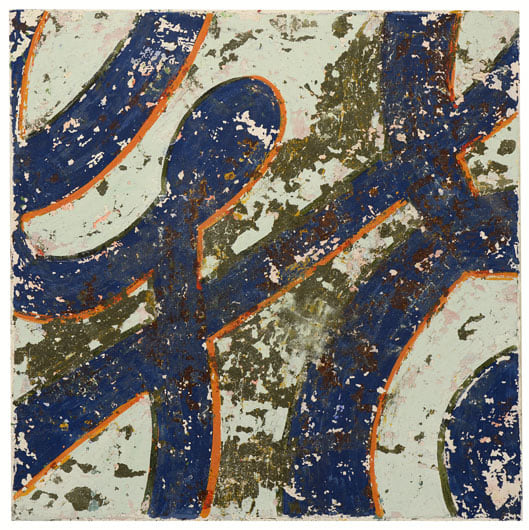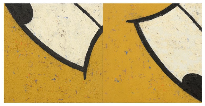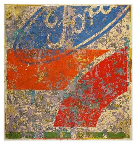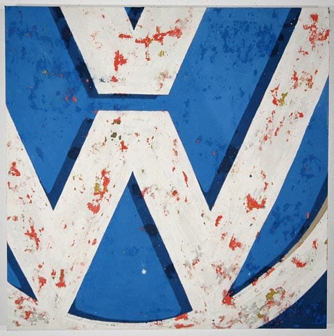 With the logo as motif Rainer Gross is consciously joining the specific context of American painting. It will suffice to name just a few examples: Just think of Edward Hopper’s famous gas station painting “Gas” of 1940 with the winged red horse of the Mobilgas Company, of Larry Rivers’ countless paraphrases of the Camel cigarette packs or of Andy Warhol’s Brillo-Boxes and Campbell’s Soup cans, and not to forget Robert Indiana, who changed the word “love” into a pop logo of world-wide recognition. By using company logos in American Pop art, painting and graphic design meet at eye-level, and it just there that Gross’s “Logo Paintings” differ, as they are decisive painterly adaptations of these Pop art motifs. Logos depend on clarity, on easy readability and recognition. This way they represent a unequivocal, “clean” image. In every day life we therefore always meet logos printed in strong colours on glossy paper, as neon ads or on computer screens, on polished surfaces of plastic or metal. In Rainer Gross’s work the colours are broken, the surfaces roughened, and the readability made difficult by fragmentation. A lot of his logos look as if the ravages of time have been at them, as if they were weathered billboards, archaeological finds of a long distanced future, in which one looks, bewildered, at the remnants of the 20th and 21st Centuries. Is that a quiet expression of irony, a hint at criticism of capitalism – and thus a typically European view of consumerism? It is, probably, more subtle: Rainer Gross looks at a phenomenon of today’s world with the eyes of a painter, a phenomenon that reduces our perception to a simple stimulus-reaction pattern. A curved yellow M on a red surface – McDonald’s – and promptly follows a locked schema: Fast Food, like it or leave it. Logos are there to transmit information fast so that we can react to it. By transubstantiating this element of our present information-swamped visual culture into painting, he slows recognition down: The logos as such are recognisable and yet they turn into something else; Colours, forms, nuances, contrasts, materially prehensile surfaces, textures. Under the eyes of the painter recognition is being decelerated: Looking at the “Logo Paintings” we understand more, differently, more nuances, and more consciously than in everyday life, where we only react reflexively to visual stimuli. Rainer Gross’s painting does not content itself with affirmation.