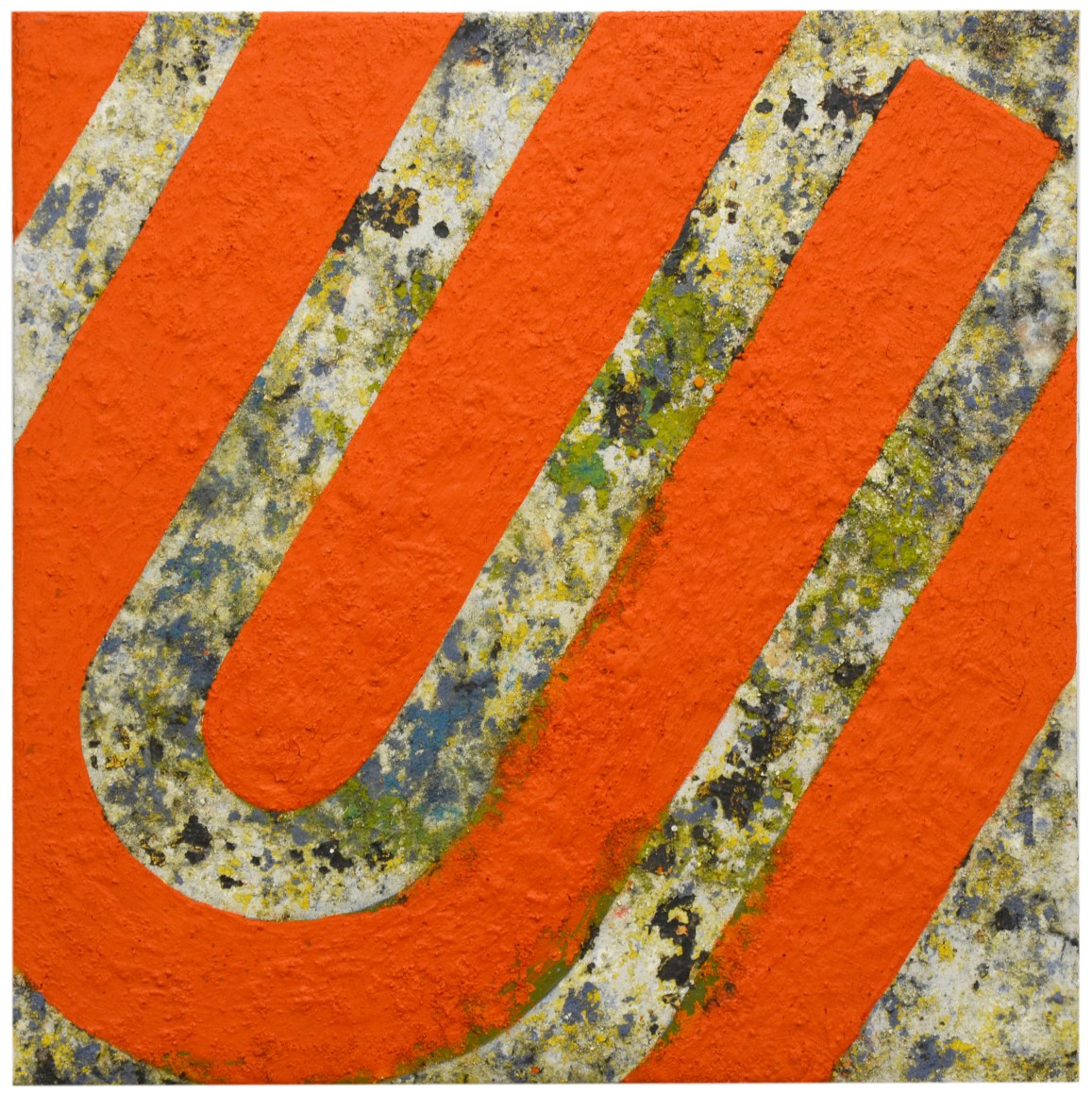 The "Logo Paintings“ series Rainer Gross has been working on since 2010 has a long history. One doesn’t need to know it to be able to savour the painterly quality and the spirit of these individual paintings and works on paper in strong colours, alternating between readability and abstraction. They do, however, gain in depth and persuasive power if one sees them within the context of the expansive oeuvre full of changes and new inventions Rainer Gross has created in the course of four decades now. For a good 20 years the artist, born in Cologne (Germany), who has been living in New York since 1972, in Manhattan, to be precise, is known on both sides of the Atlantic through numerous exhibitions as an abstract painter. With the invention of “Contact Painting”, a casting technique he developed starting from traditional monotype transferred to painting, he created for himself a flexible instrument with which he was able to make experiments in different directions. This method enabled him to bring chance and control in varying proportions into the process of painting. With that Rainer Gross was able to add a processually oriented variant to abstract painting, beyond the monochrome, colour painting as well as radical painting. The “Logo Paintings” evolve, by way of painterly technique, directly from the “Contact Paintings”, with the decisive difference that they leave the pure non-representational behind through their reference to very widespread company signets and popular symbols, which are also anchored in collective memory.