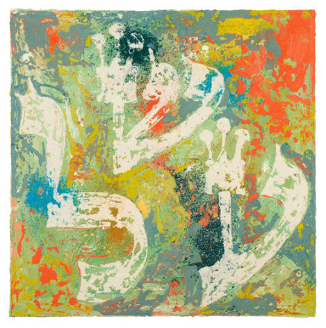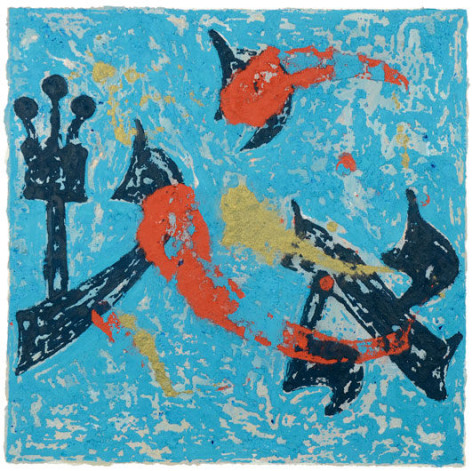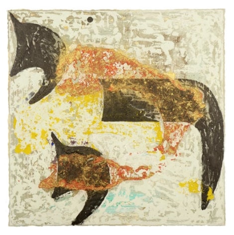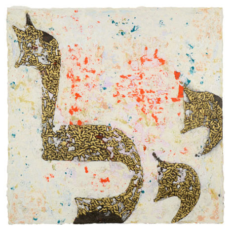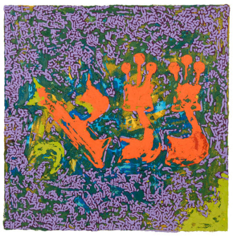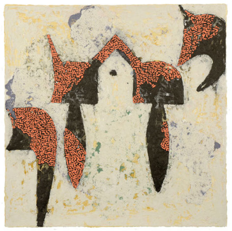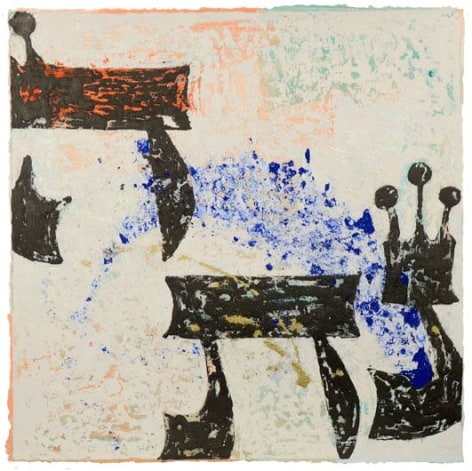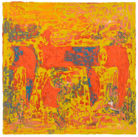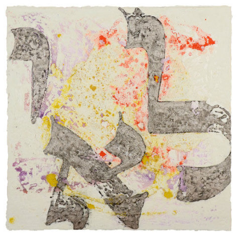 72 is a series of works on paper each measuring 20 x 20", 51 x51cm. The dimensions for showing them together are variable depending on the space. Each piece starts out as a monotype and a number of them have added brush markings.
