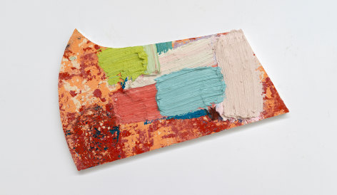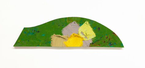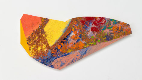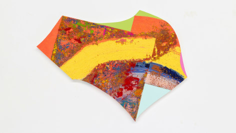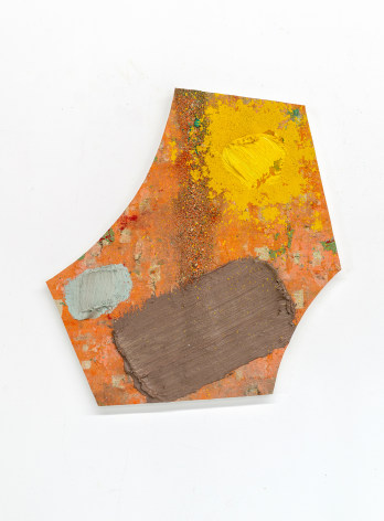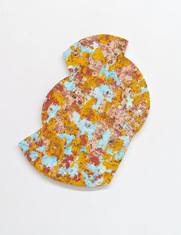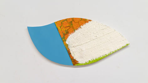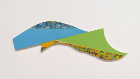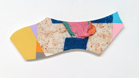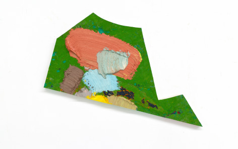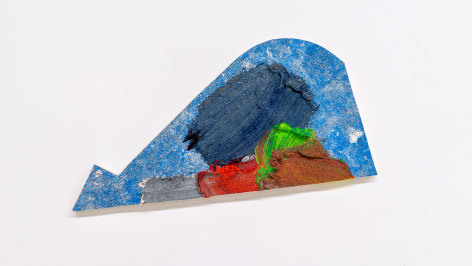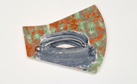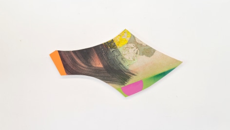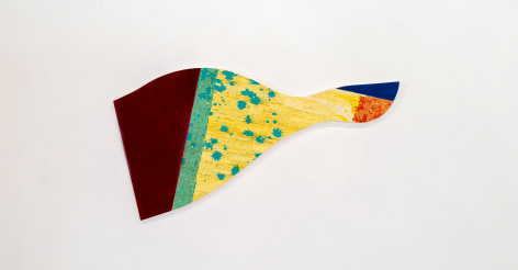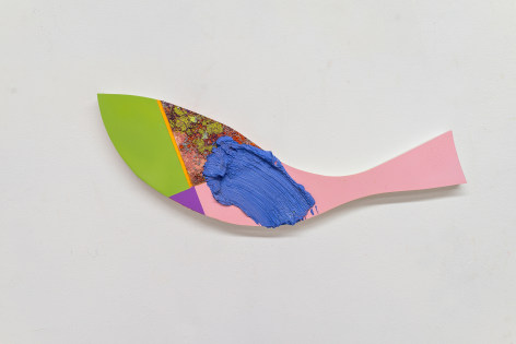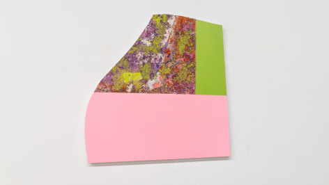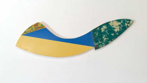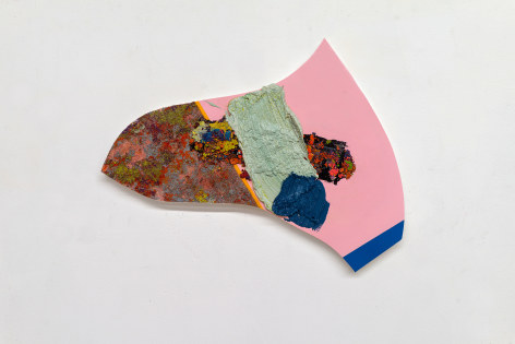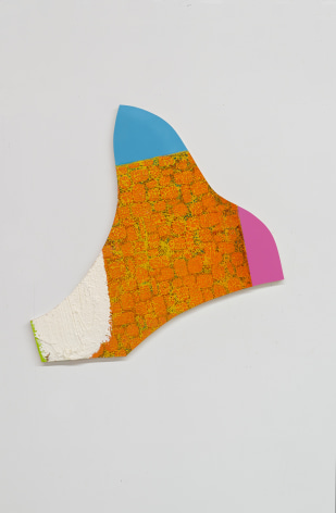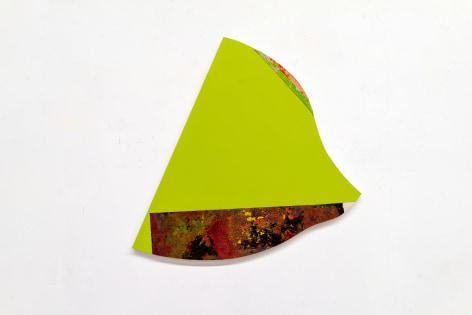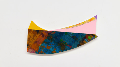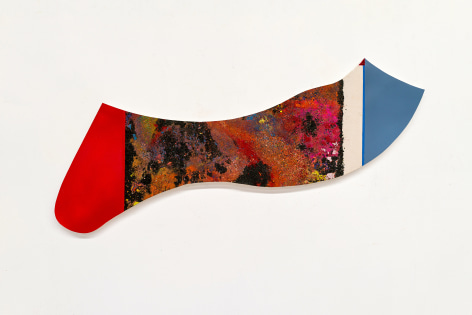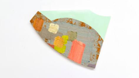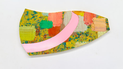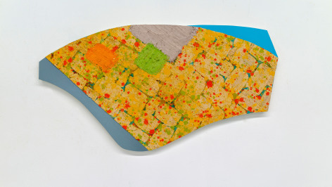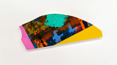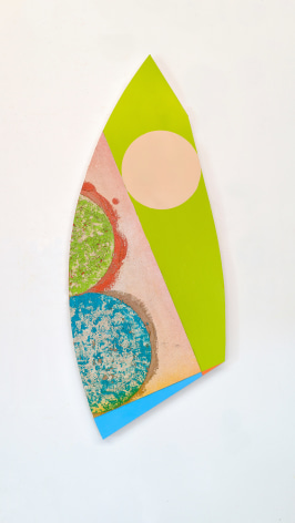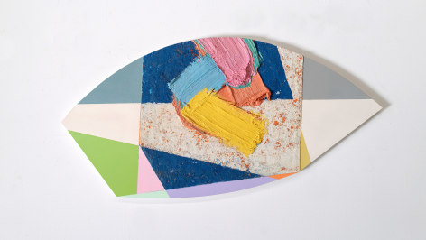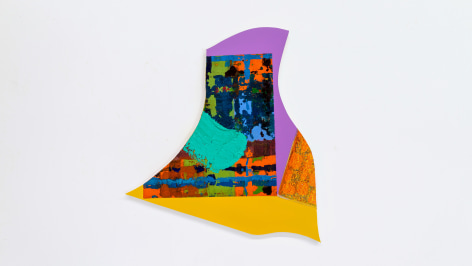 I began a new series of shaped works during the early stages of the pandemic. The fragmentation of our lives resonated in my creative procces. Borders become irregular. Images emerged as collaged fraction of my imagination.